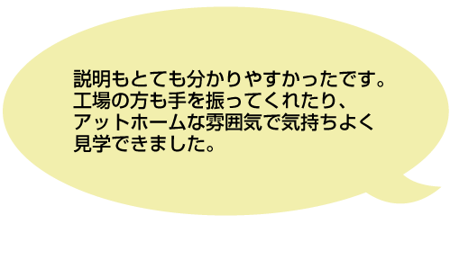 春休み親子現地工場見学のお客様の声をご紹介します。